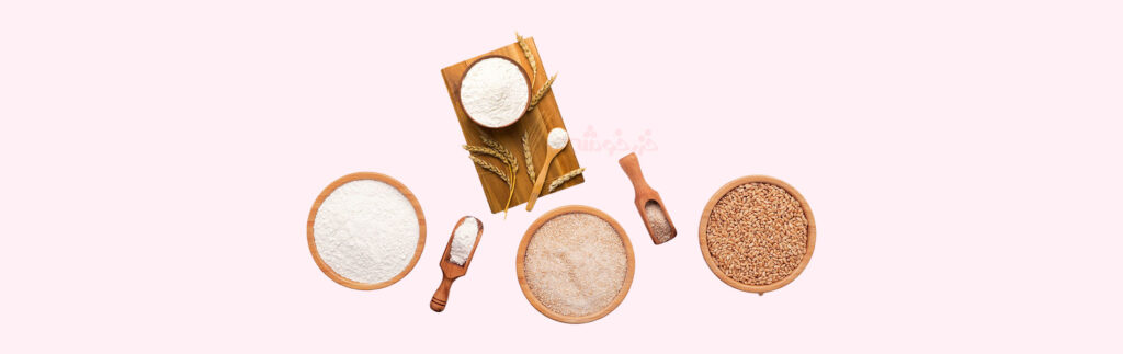 | آرد گندم خزرخوشه | ۱.۵ پیمانه (۱۸۰ گرم) | برای بافت سبک |